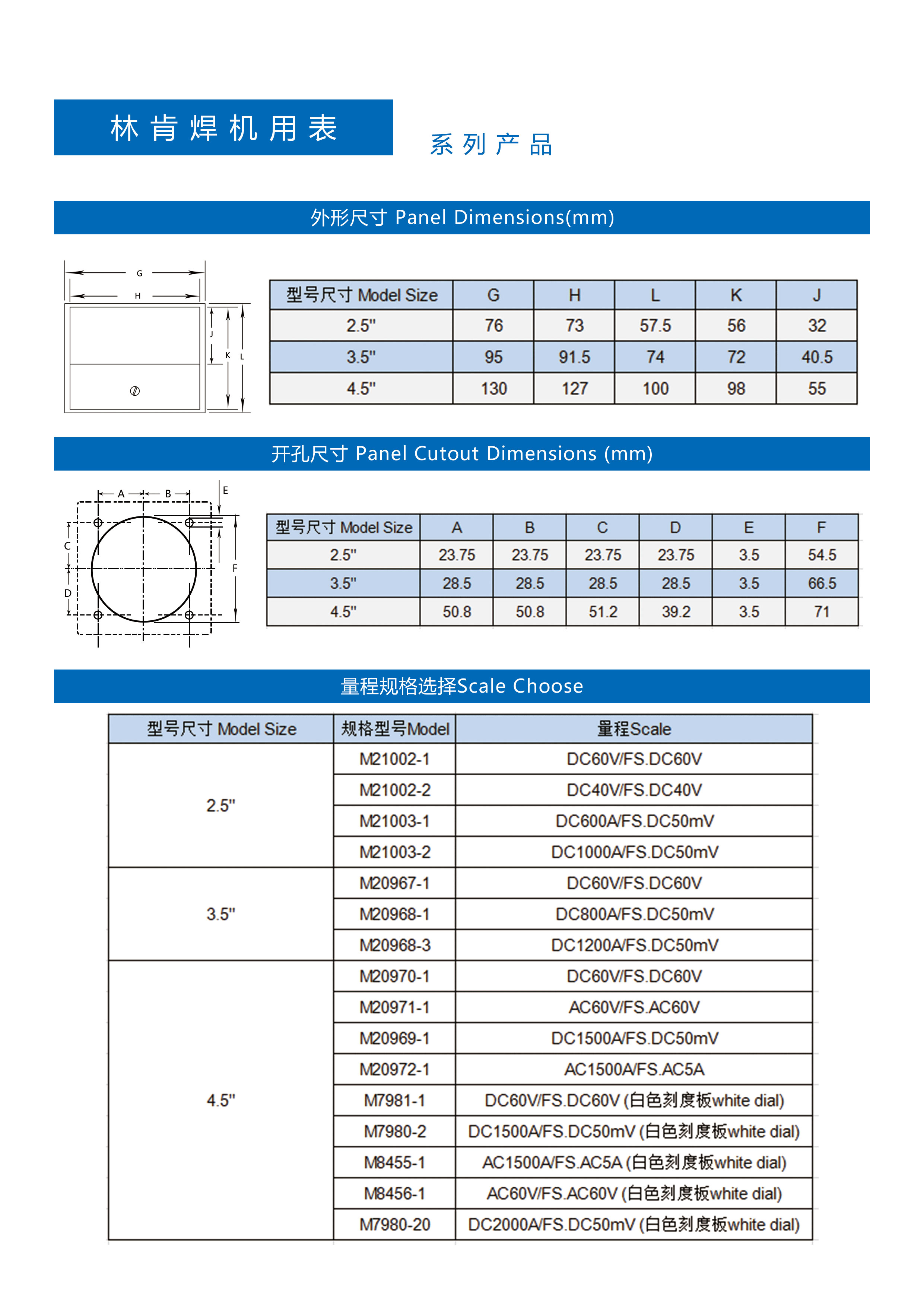 林肯焊機專用表交流電流表M8455-1結構材料組成